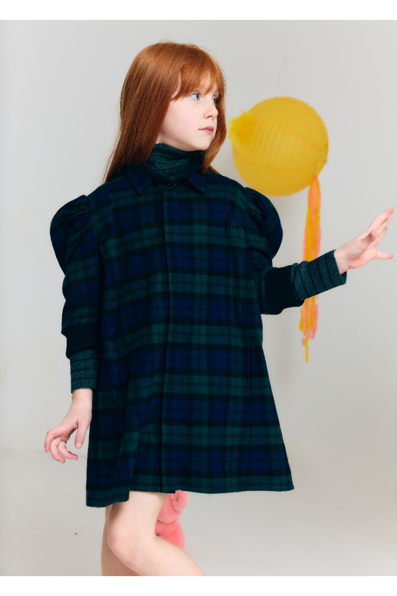 Yentle checked dress with balloon sleeves blue