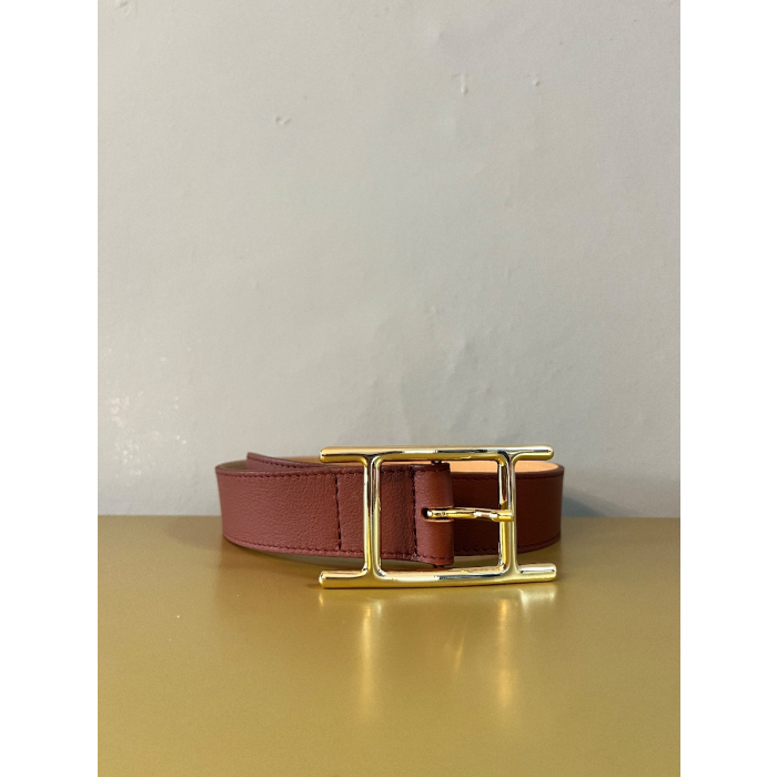 Ceinture cognac avec boucle dorée - 3,5 cm