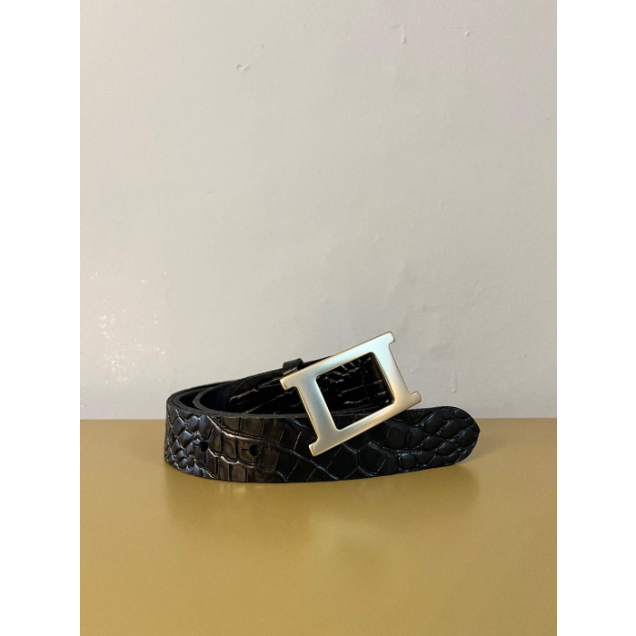 Ceinture en cuir croco avec boucle argentée - 3 cm