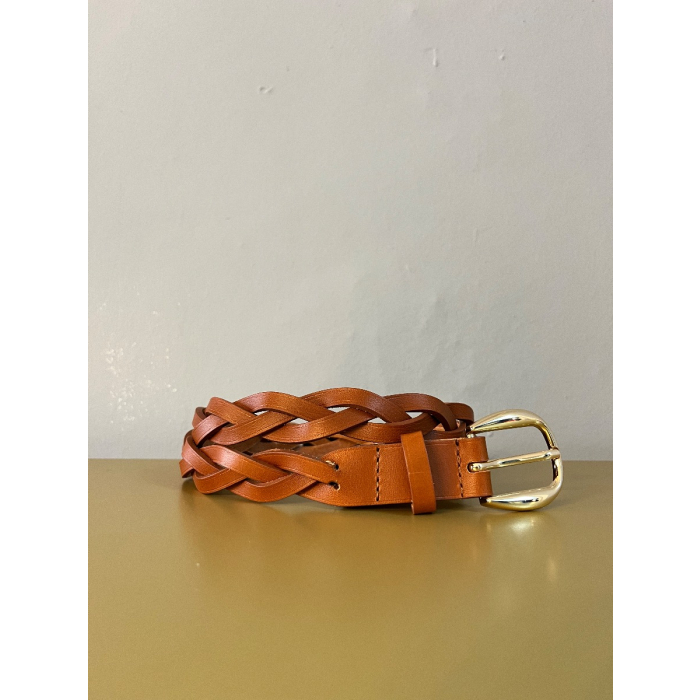 Ceinture en cuir tressé avec boucle dorée - 2,5 cm