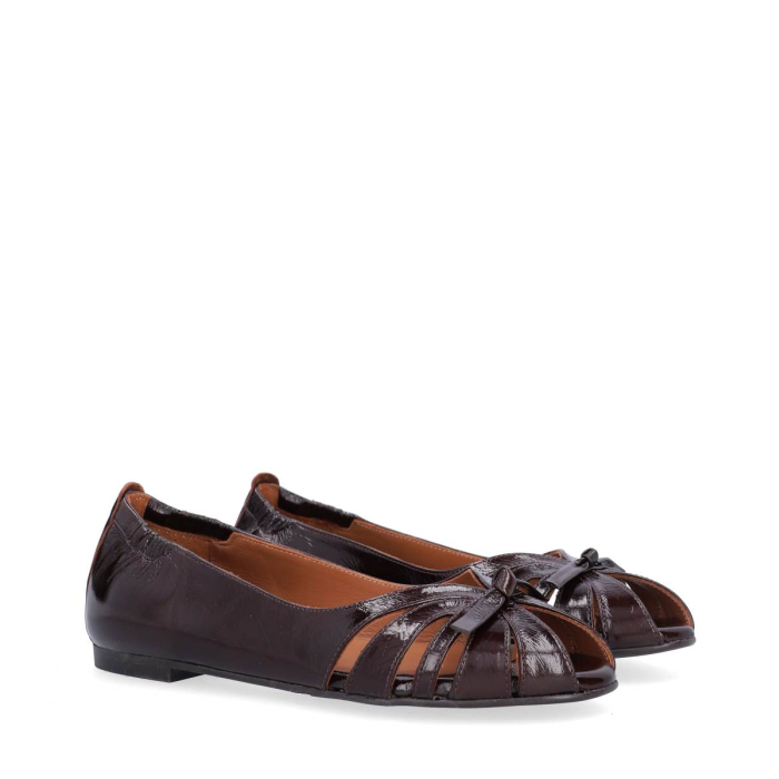 Handcrafted ballerina with a round toe, designed with details on the front and an elastic heel cap.