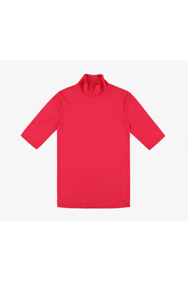 Felroze sous-pull met rolkraag voor dames van Caroline Bosmans