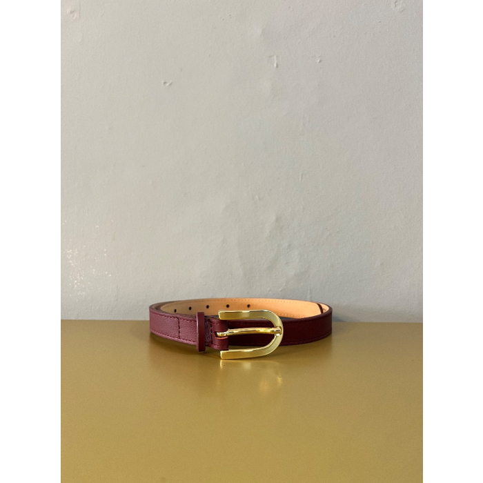 Lederen bordeaux riem met gouden gesp - 2 cm