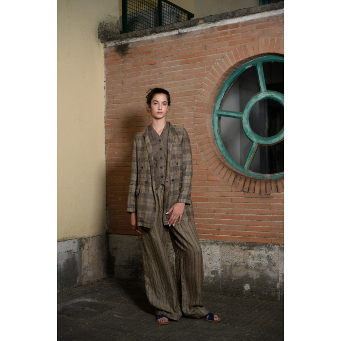 Double-breasted brown linen jacket