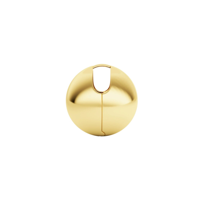 The Eclipse earring features a bold, spherical gold design with a smooth, sculptural finish.