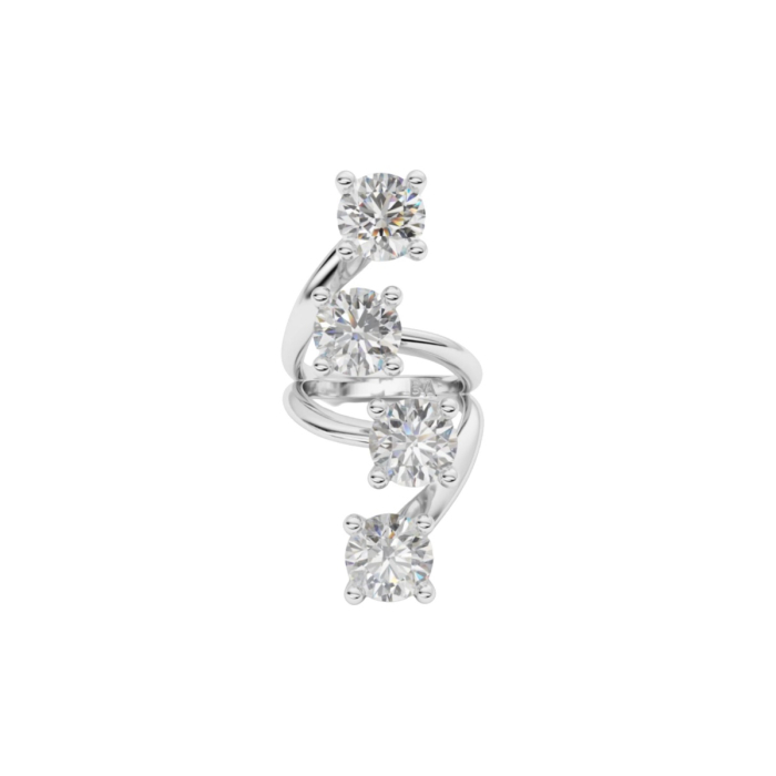 A graceful silver ring with a flowing design, set with brilliant diamonds that create a dynamic and elegant look.