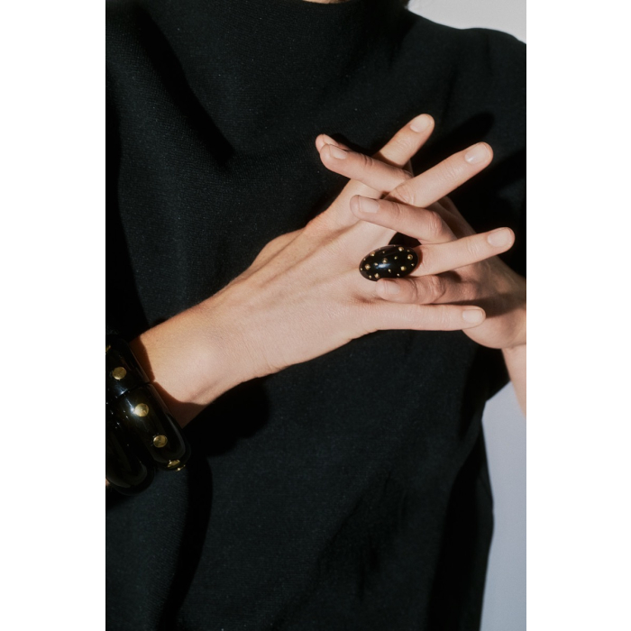 Zwarte ring met gouden studs