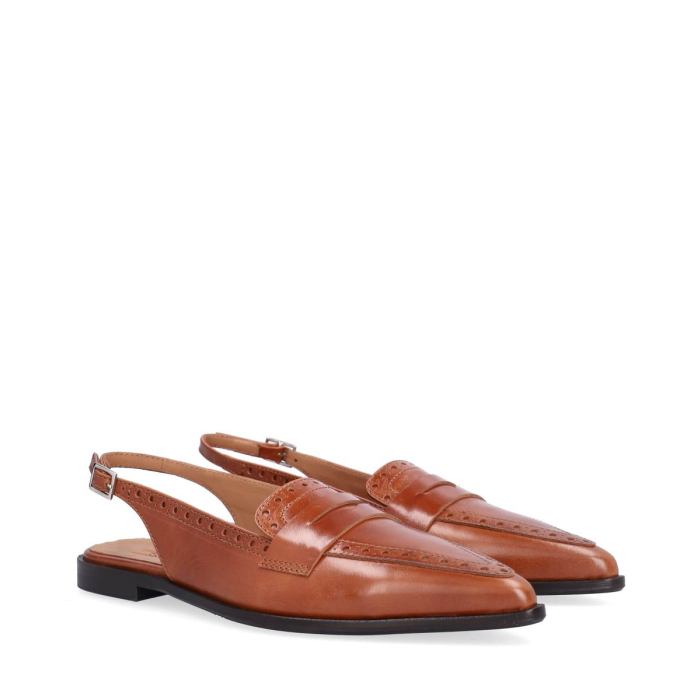 Handcrafted slingback with a pointy toe, designed with beautiful stitching, and a cut-out detail on the front. The slingback has an adjustable ankle strap and buckle closure.