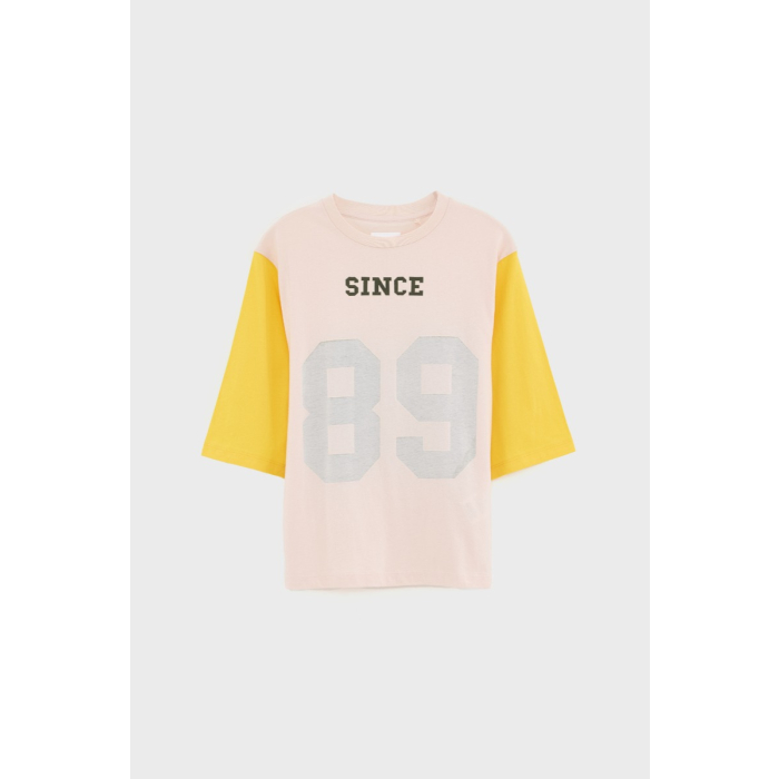 Roze t-shirt met gele mouwen